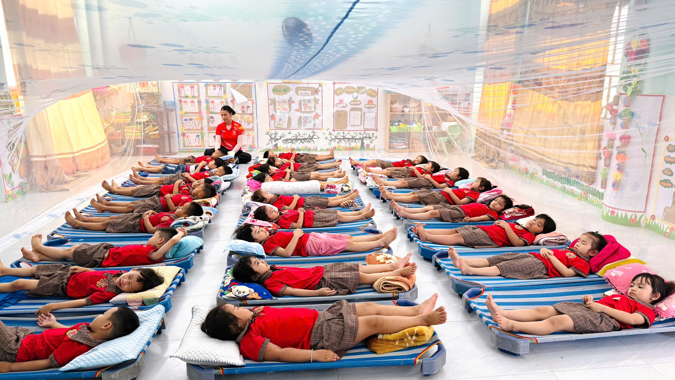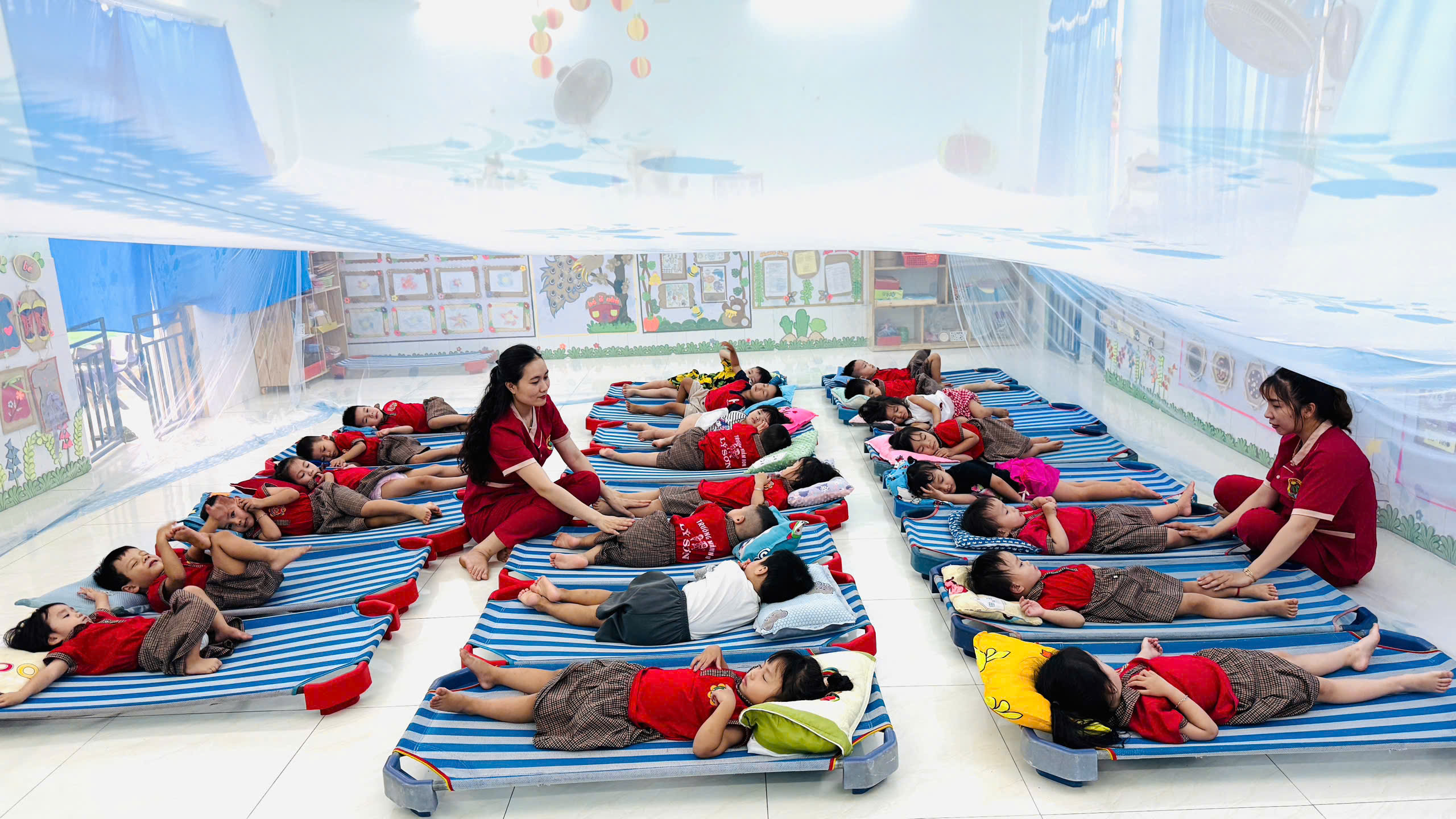 + Cho trẻ ngủ mùng tránh muỗi đốt