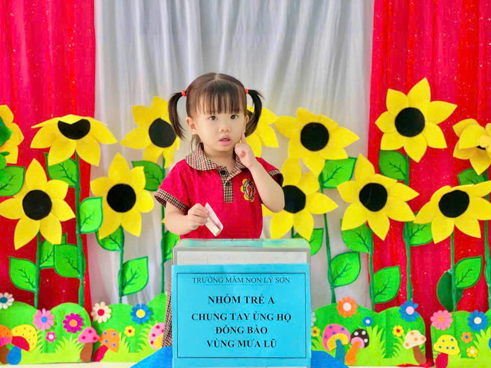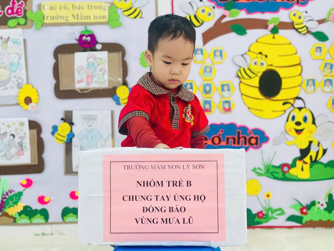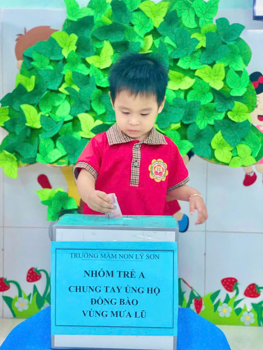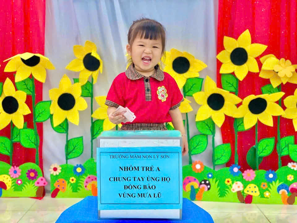 Nhà trường cảm ơn sự chung tay và ghi nhận những tấm lòng sẻ chia của đội ngũ CB,GV,NV của tất cả phụ huynh học sinh trẻ Trường Mầm non Lý Sơn đã chung tay hỗ trợ tinh thần vật chất góp phần động viên đến bà con Miền trung thân yêu trong trận lũ lụt vừa qua! Nhà trường đã chuyển toàn bộ số tiền được nhận hỗ trợ đến tài khoản quỹ Ban cứu trợ đặc khu Lý Sơn.