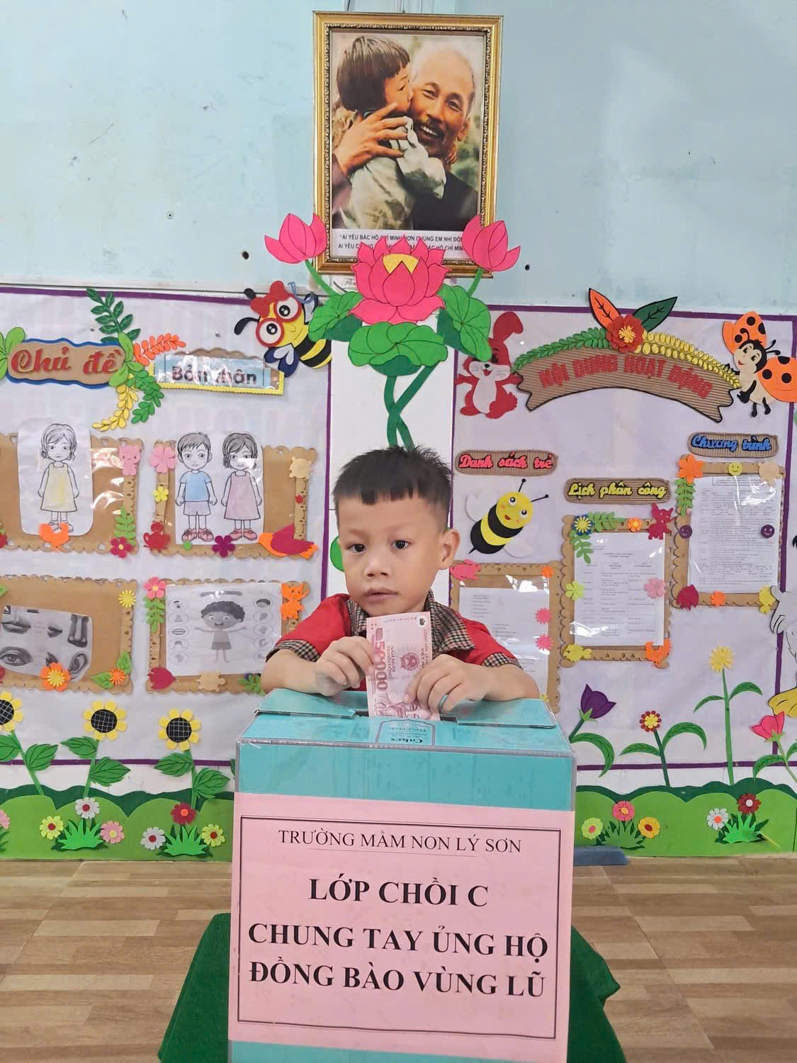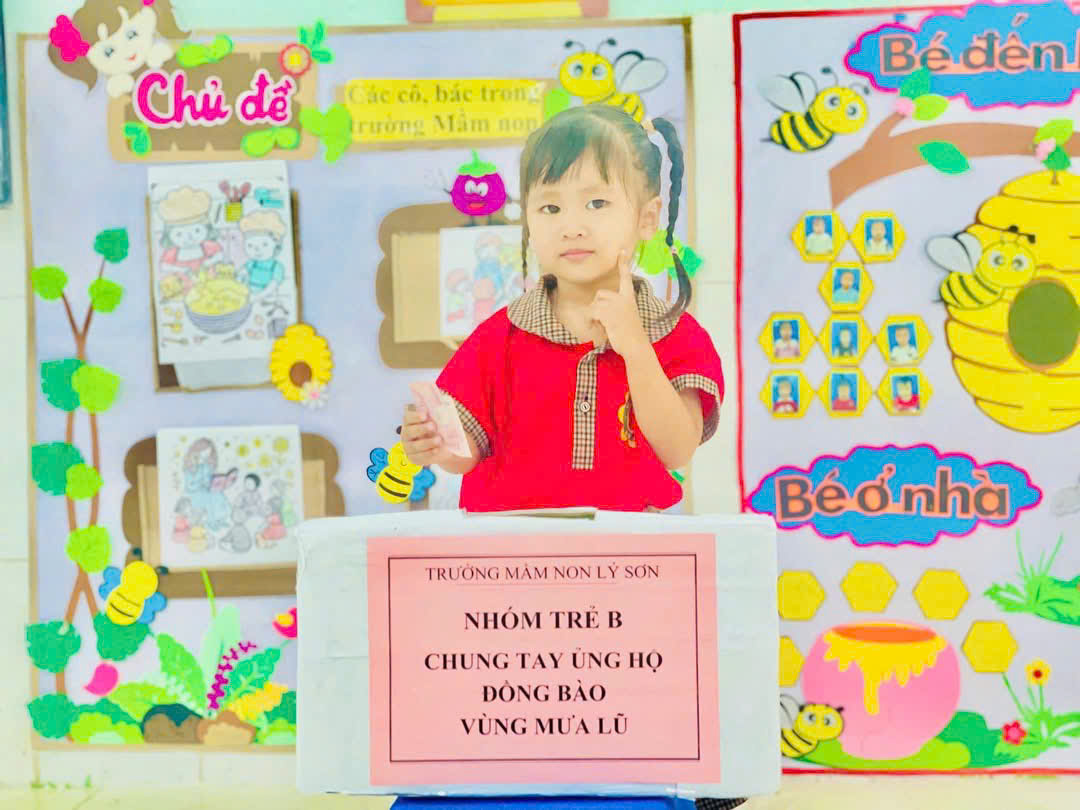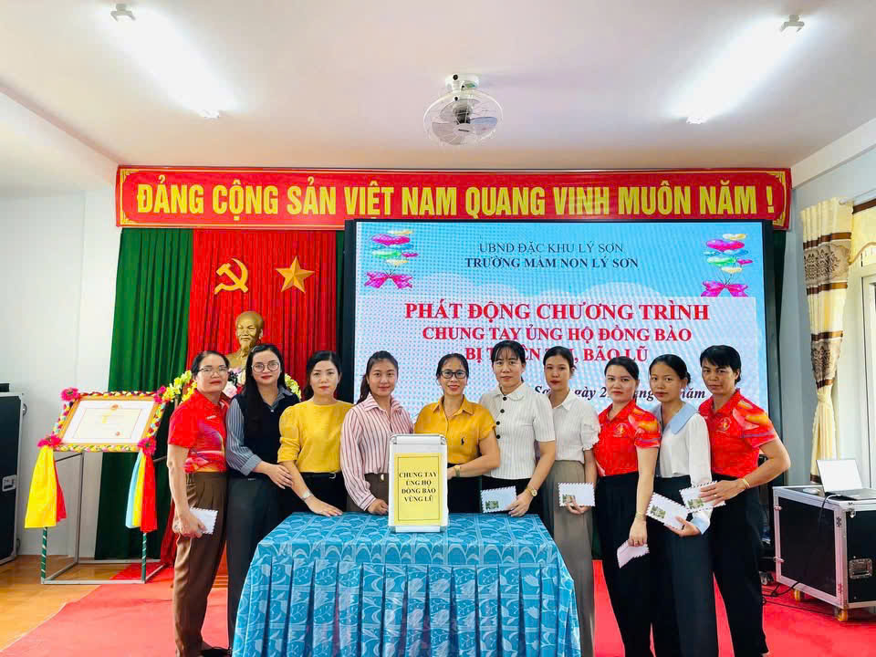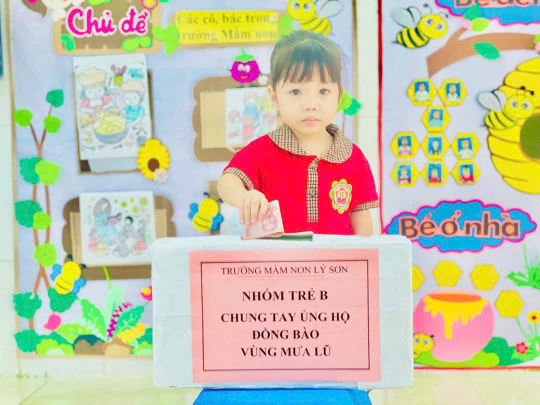 Nhà trường cảm ơn sự chung tay và ghi nhận những tấm lòng sẻ chia của đội ngũ CB,GV,NV của tất cả phụ huynh học sinh trẻ Trường Mầm non Lý Sơn đã chung tay hỗ trợ tinh thần vật chất góp phần động viên đến bà con Miền trung thân yêu trong trận lũ lụt vừa qua! Nhà trường đã chuyển toàn bộ số tiền được nhận hỗ trợ đến tài khoản quỹ Ban cứu trợ đặc khu Lý Sơn.