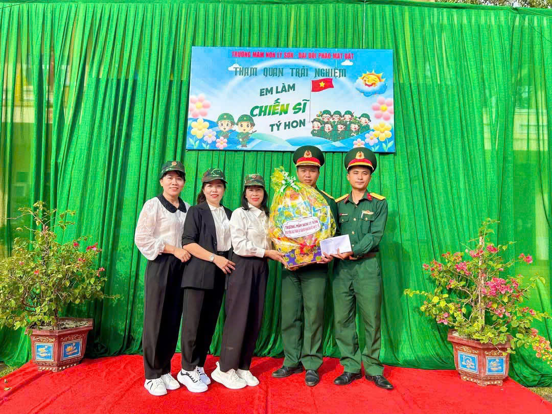 Nhân kỷ niệm 81 năm Ngày thành lập Quân đội Nhân dân Việt Nam (22/12/1944 – 22/12/2025), Trường Mầm non Lý Sơn đã tổ chức đoàn đến thăm, tặng hoa và gửi những lời chúc mừng tốt đẹp nhất đến các cán bộ, chiến sĩ đơn vị trên địa bàn đặc khu Lý Sơn. Đây là hoạt động mang ý nghĩa thiết thực nhằm thể hiện tình cảm, sự tri ân và lòng biết ơn sâu sắc đối với những người đang ngày đêm canh giữ, bảo vệ Tổ quốc.