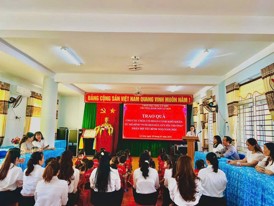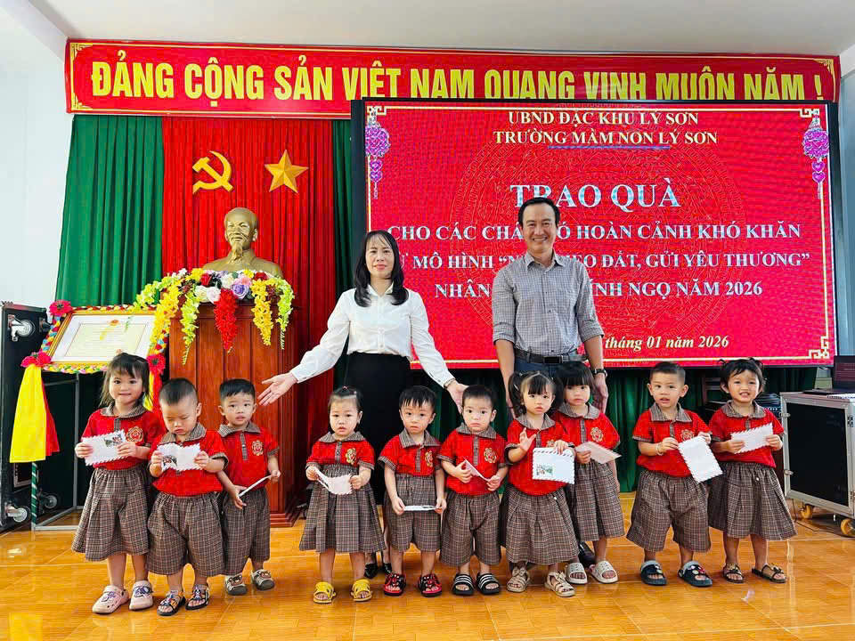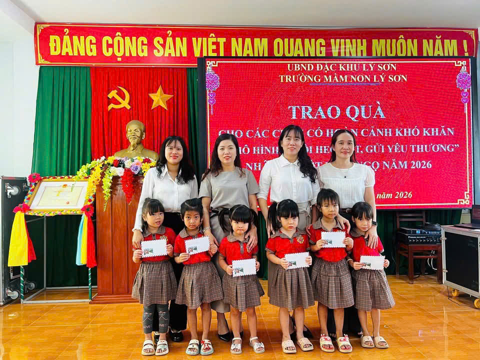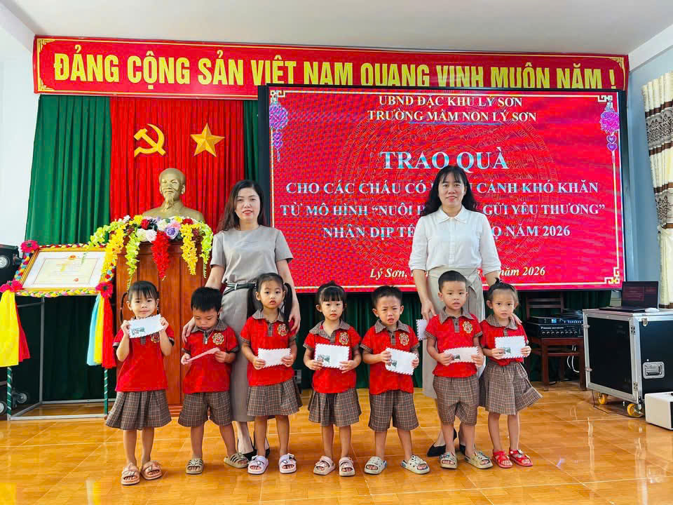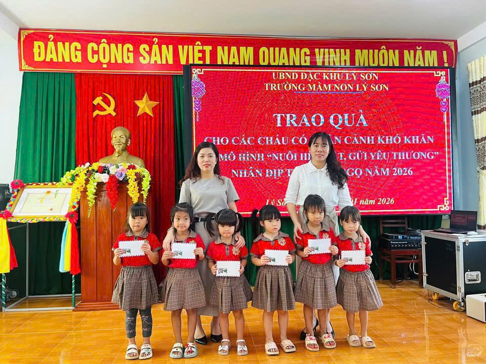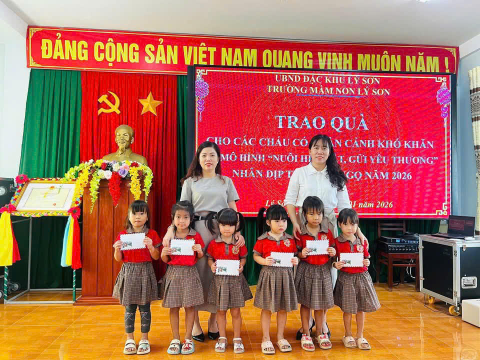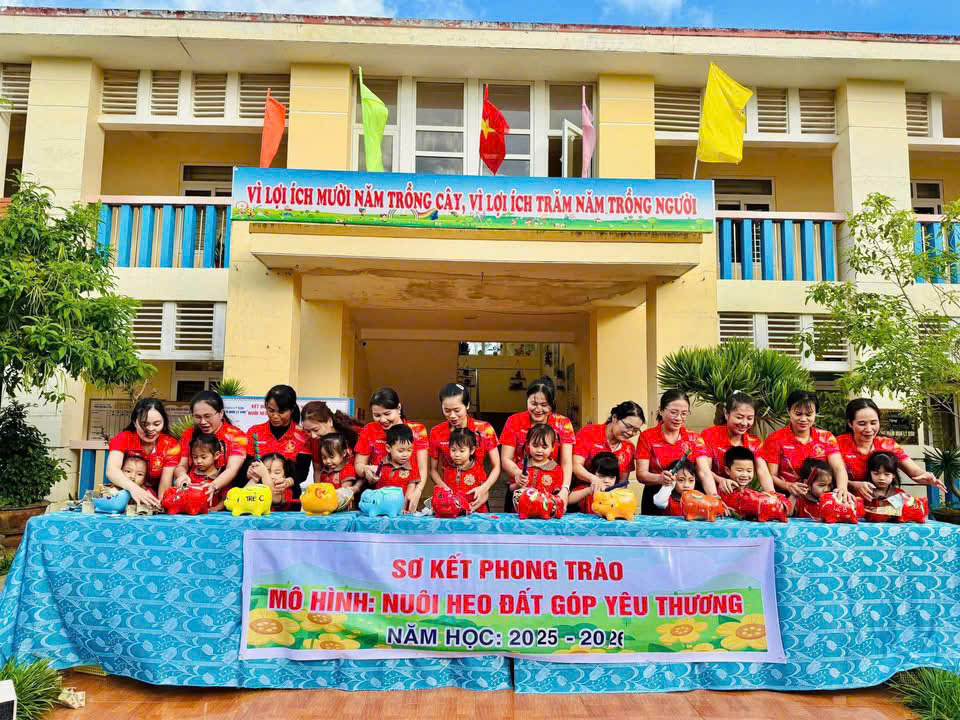 Trong học kỳ I năm học 2025 – 2026, Trường Mầm non Lý Sơn đã triển khai và duy trì hiệu quả mô hình “Nuôi heo đất – gửi yêu thương”, một hoạt động mang ý nghĩa nhân văn sâu sắc, góp phần giáo dục cho các cháu tinh thần sẻ chia, yêu thương và biết quan tâm đến những hoàn cảnh còn khó khăn.
